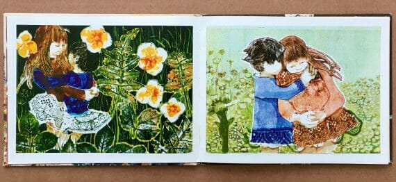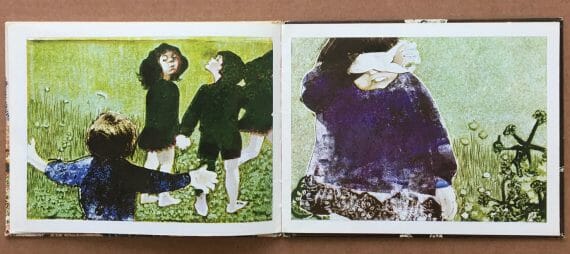 The wordless picturebook Vicki tells the story of a lonely but resourceful little girl who finds an unusual way to solve her problems. When she is rejected by various playmates, Vicki decides to sew her own doll ‘friend’ out of wool and fabric. This toy then provides a route for her to be accepted by the other children.