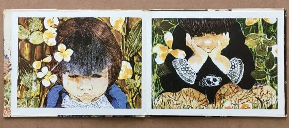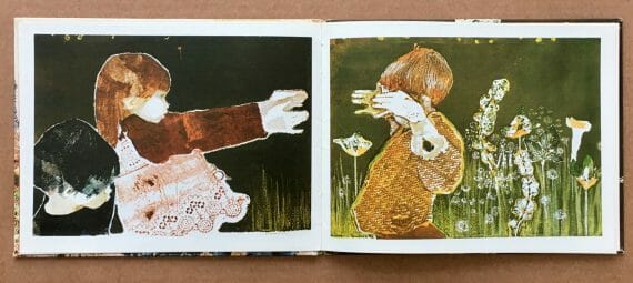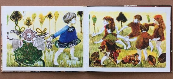Renate had an unusual and distinctive style, as she used various techniques to create her illustrations, including oils, water-colour, collage and painting on plastics and glass. In Vicki she printed directly onto paper through a variety of materials such as leaves, grasses, lace and other fabrics.