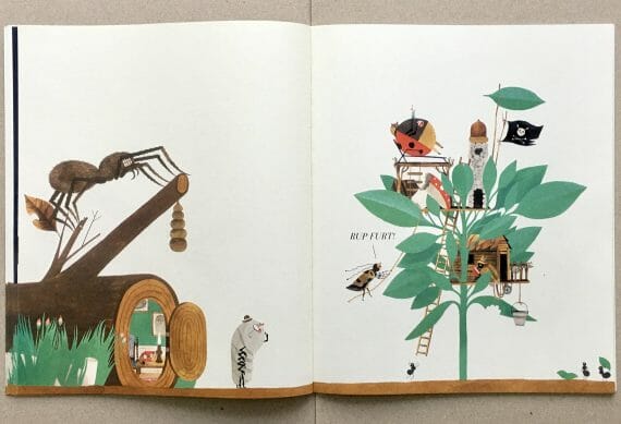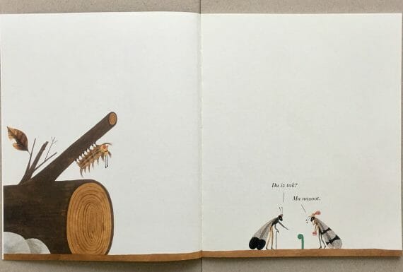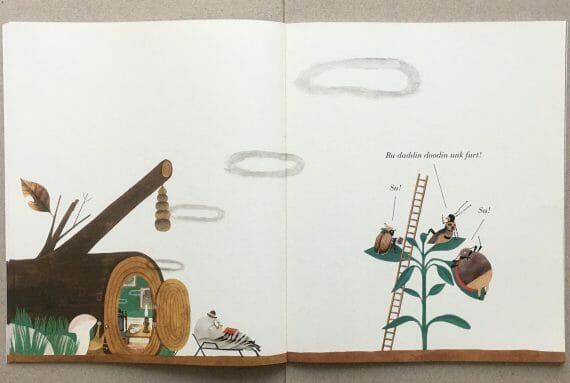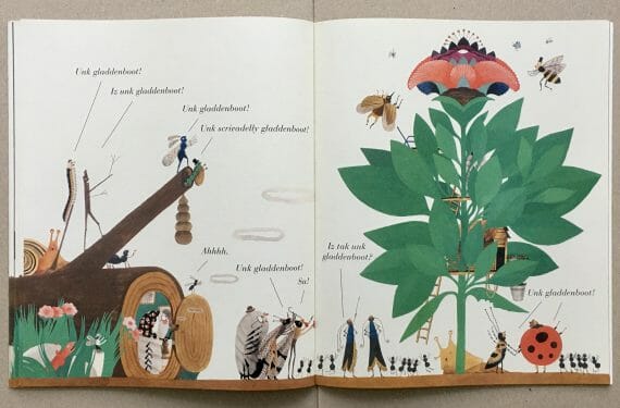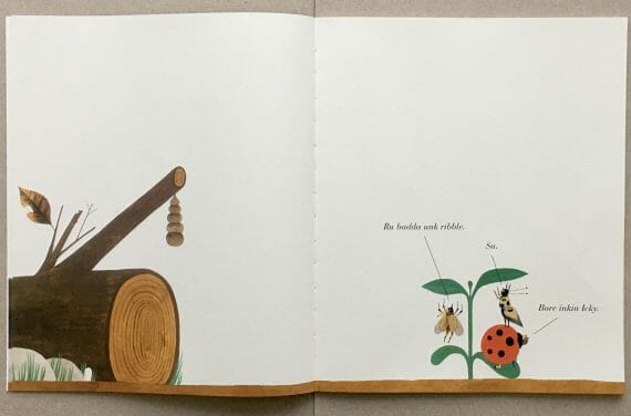 OK, this is NOT a wordless book. But it earns its place on this website because the language used is an invented one – a made-up ‘bug’ dialect – that isn’t spoken anywhere in the known world.