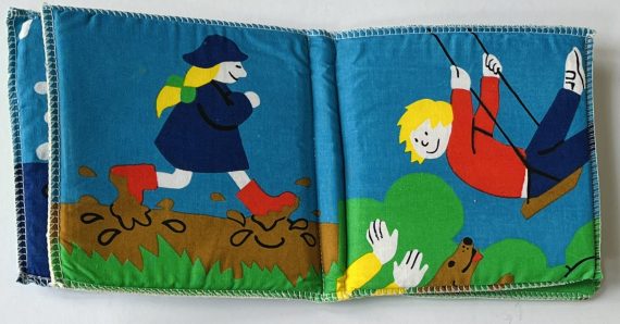 Fun by Jan Pieńkowski is one in a series of four nursery cloth books that also includes Animals, Friends and Play.