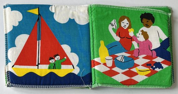 Later images in Fun show summery scenes of sailing boats, a family picnic and a glorious rainbow. Each picture offers an opportunity to talk to a toddler about different activities.