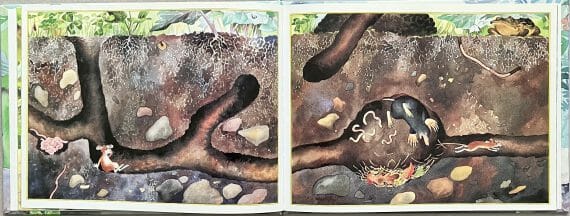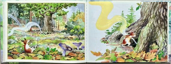Although this story is focused on the mouse’s fast-paced dash through the forest, there are many interesting things to talk about with a child reader. Bente Bech’s rich illustrations show a range of realistic plants, animals, birds and insects, from a weeny ladybird to a giant bird, from a flowering honeysuckle to a caterpillar-laden Brussels sprout stalk. And the endpapers are delightful too.