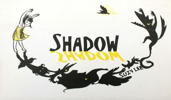 The wordless picturebook Shadow celebrates the richness of the imagination and the emotional power of stories that children create for themselves. It begins and ends with the click of a light switch, and inbetween Suzy Lee’s two-colour artwork depicts the tale of a young girl who becomes so absorbed in her make-believe game she ends up scaring herself.