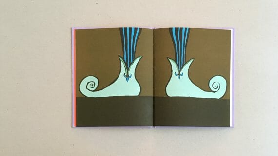 Spread from Snail, Where Are You?, showing spirals in the toes of the shoes
