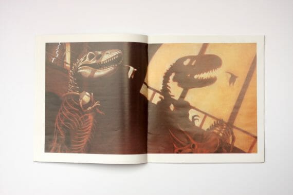 Lightning strikes, and strange bird flies into a cavernous museum full of dinosaur skeletons and transforms them back into living creatures.