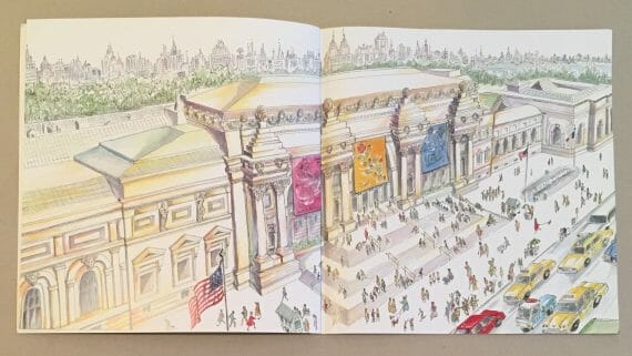 Spread from You Can’t Take A Balloon Into The Metropolitan Museum, showing the grand entrance to the museum
